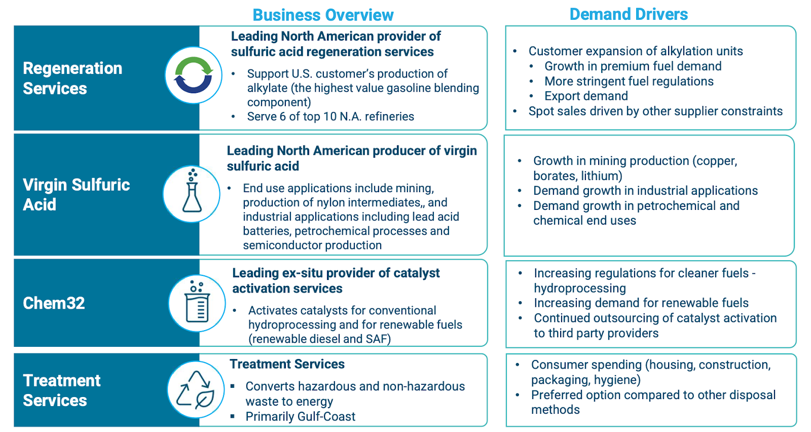 So, the circle of life for us is, 1) a refinery uses sulfuric acid, which 2) bleeds off spent acid, which 3) Ecovyst takes and turns into 99% regenerated acid and 4) gives back to the refinery to use again.