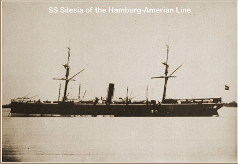 So, in October 18813 Nicholas, Jacob, and Abram took a passenger train from Brody to Hamburg, where they boarded the steamer Silesia for America. Nicholas wrote it was, “...apparently not intended for ocean passenger travel," and, "this was to be her last and only trip as such."4